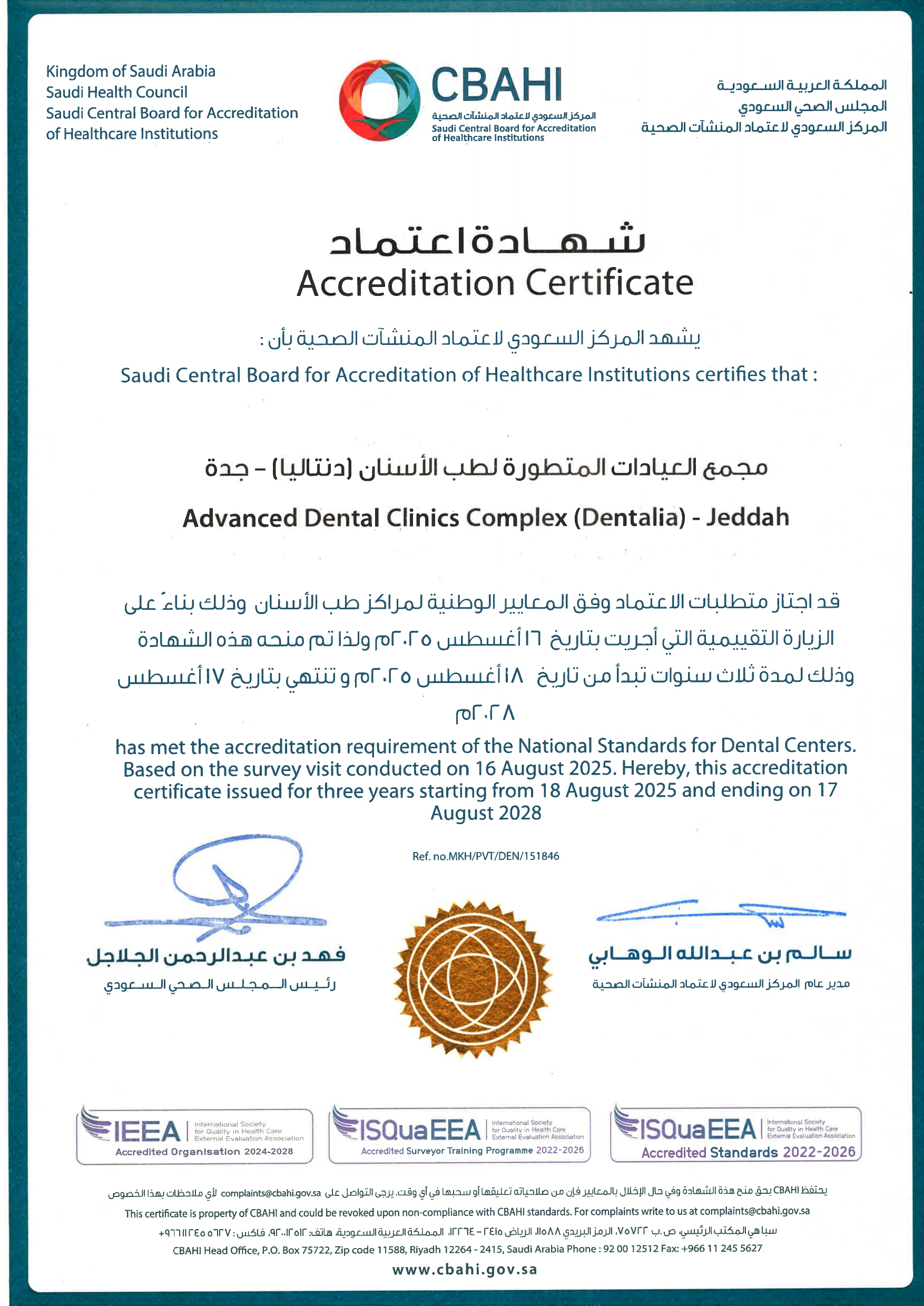عيادات دنتاليا هي سلسلة عيادات أسست لتوفر لك خدمة طبية شاملة وبرامج صحية متميزة في مجال الأسنان من خلال تطبيق المعايير العالمية في الرعاية الصحية. من أجل تلبية احتياجاتك في راحة تامة نقوم بتوفير خدماتنا الطبية طوال ايام الإسبوع وحتي في الأجازات الرسمية ويتواجد أطباء متخصصين.